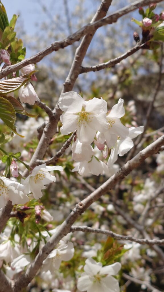 純白の花びらに若葉が混じるオオシマザクラは、またソメイヨシノとは違った見応えがあります。