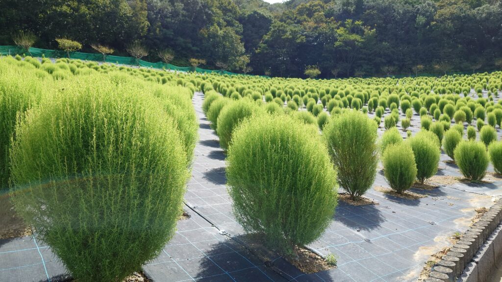 11月頃になりますと、赤くなっていくコキアも楽しんでいただけると思います。