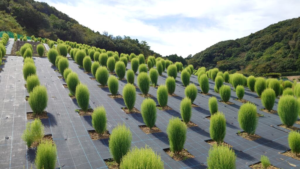 11月になって、5200本のコキアが、燃えるように紅葉するのが楽しみです‼️🍁🍁🍁