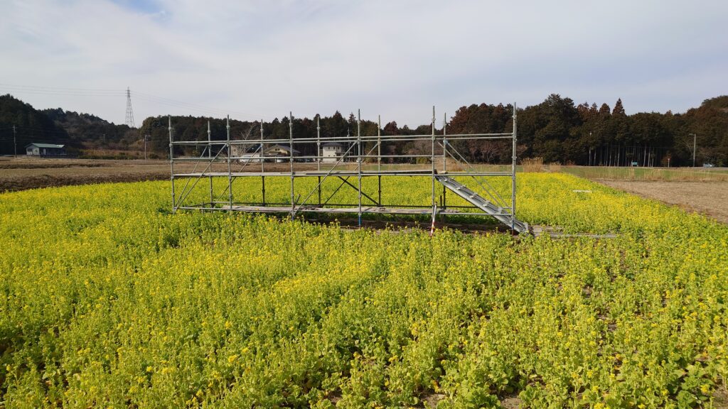 菜の花畑は、あぜ道を回ると一周できます。