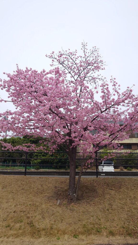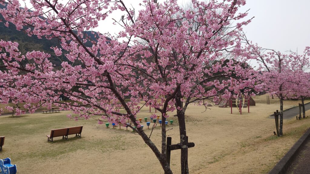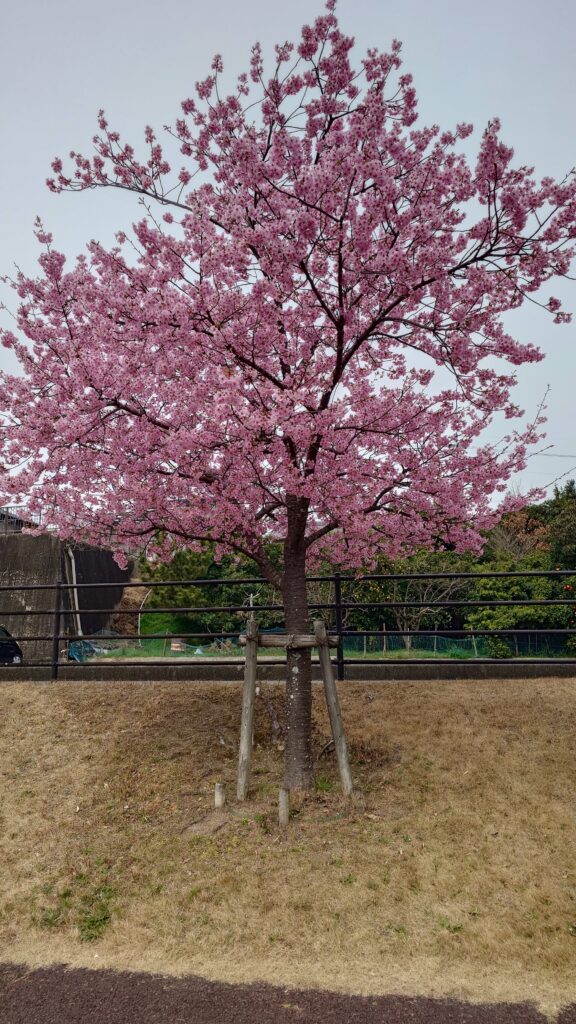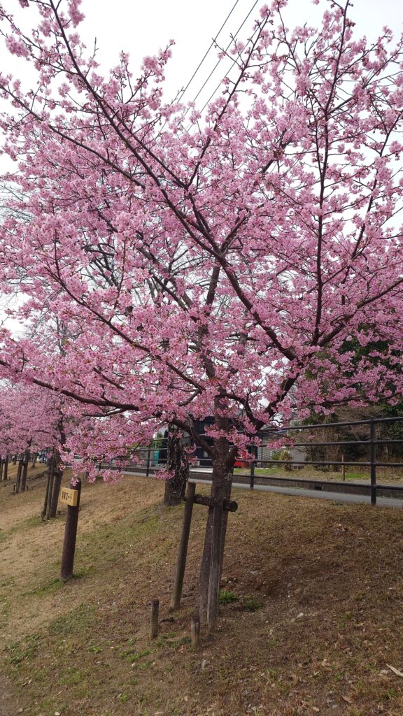 隣には公園もあり、公園側にも河津桜が植えられています。